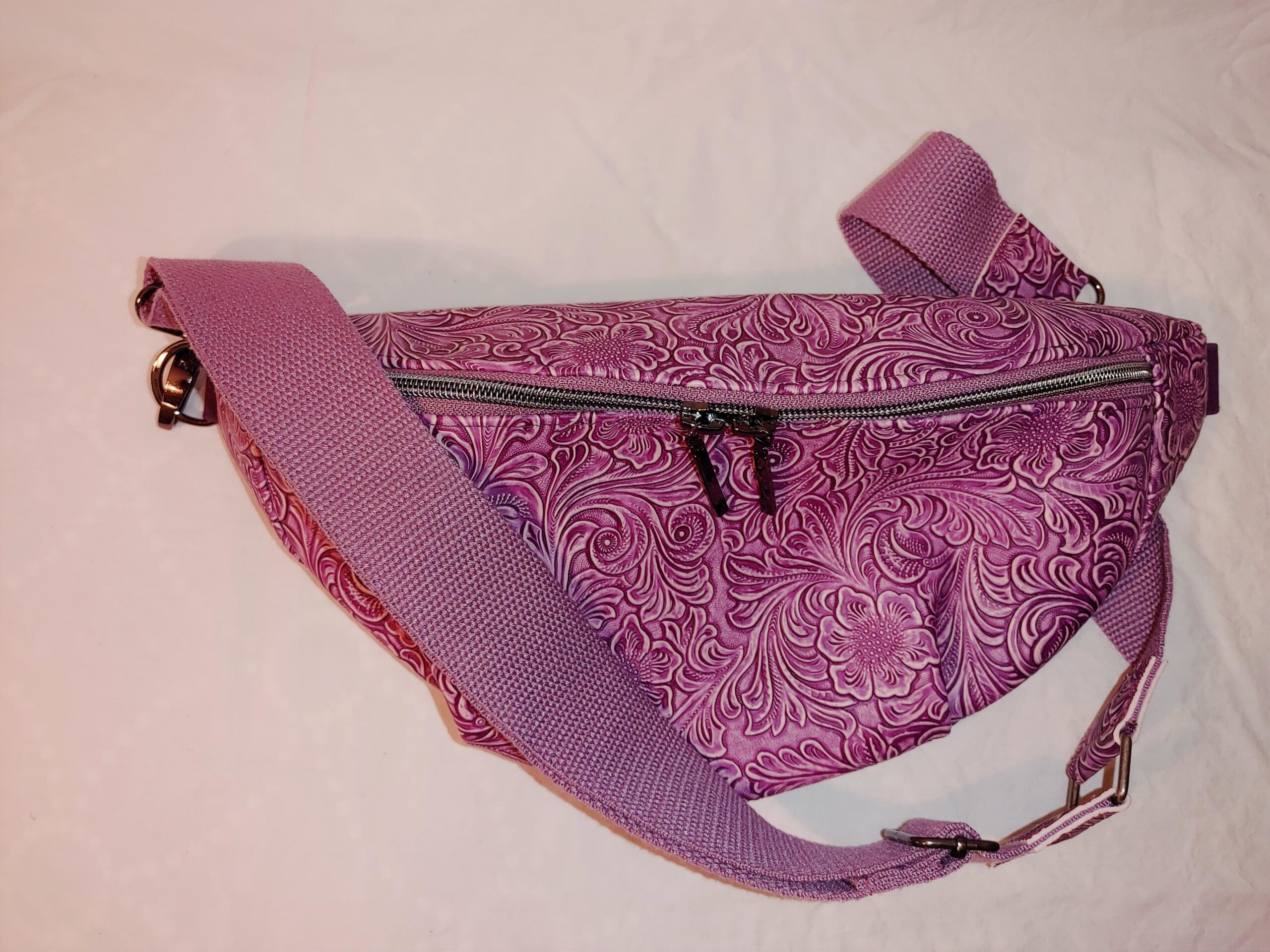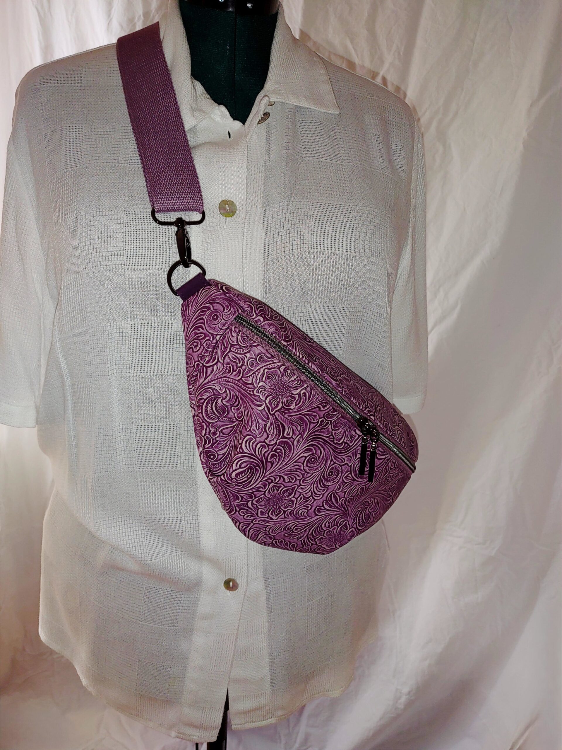 Bauchtasche aus geprägtem Kunstleder in Lila – elegant & handgefertigt