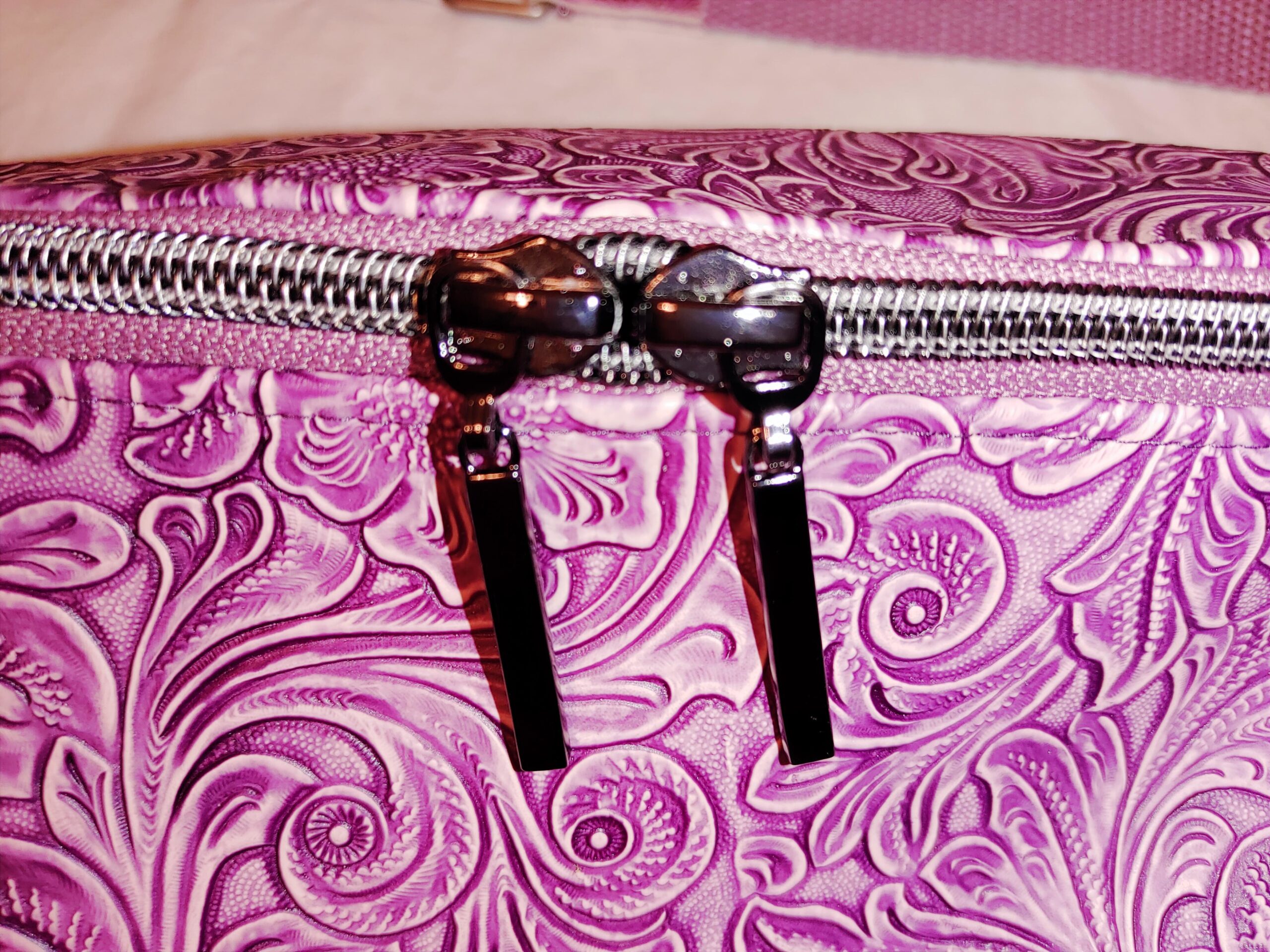 Elegant, strukturiert und handgefertigt – diese Bauchtasche aus geprägtem lilafarbenem Kunstleder vereint Stil, Funktion und Liebe zum Detail. Mit Reißverschlüssen in Anthrazit-Metallic, passendem Innenfutter und verstellbarem Tragegurt ist sie die perfekte Begleiterin für Alltag und Reisen.