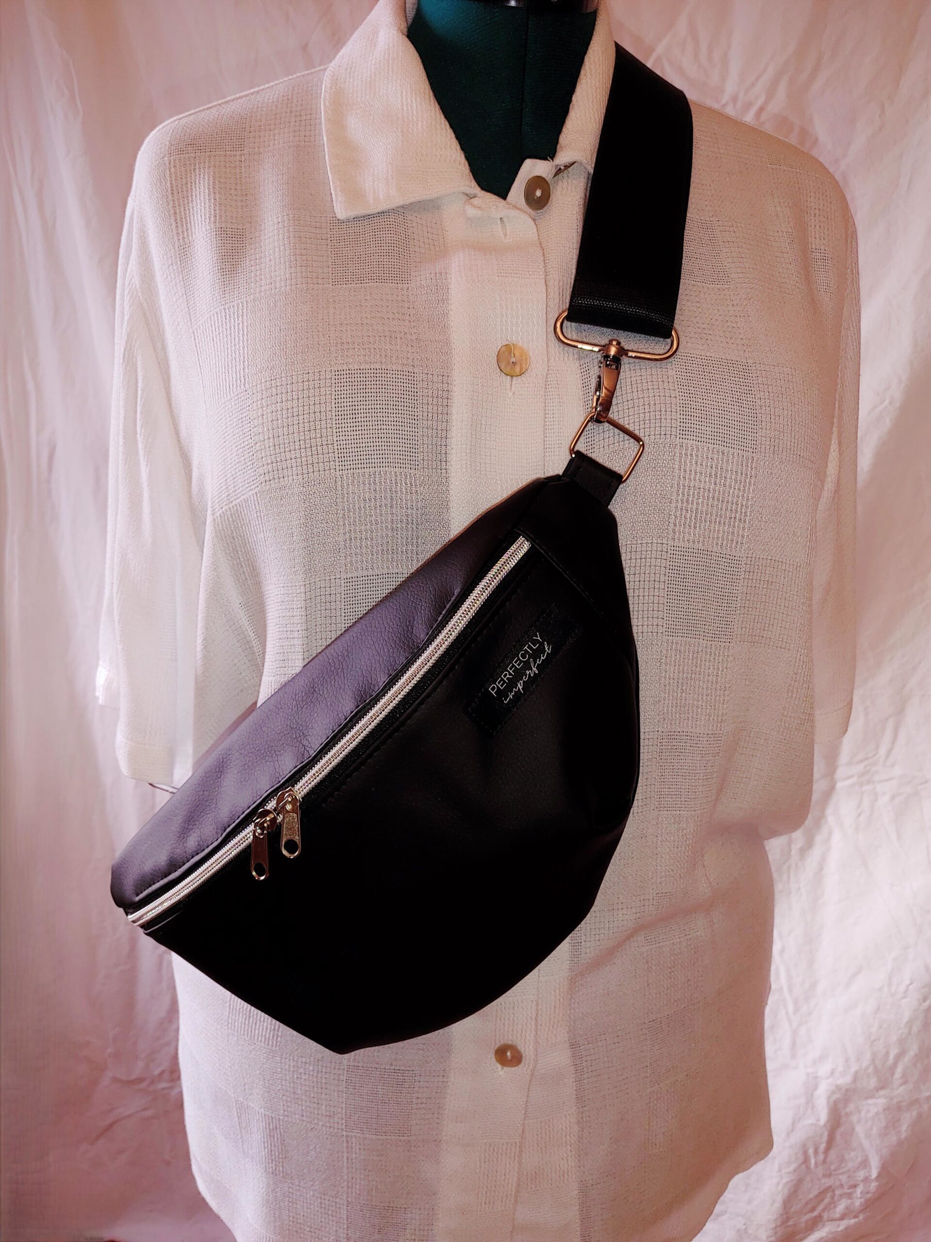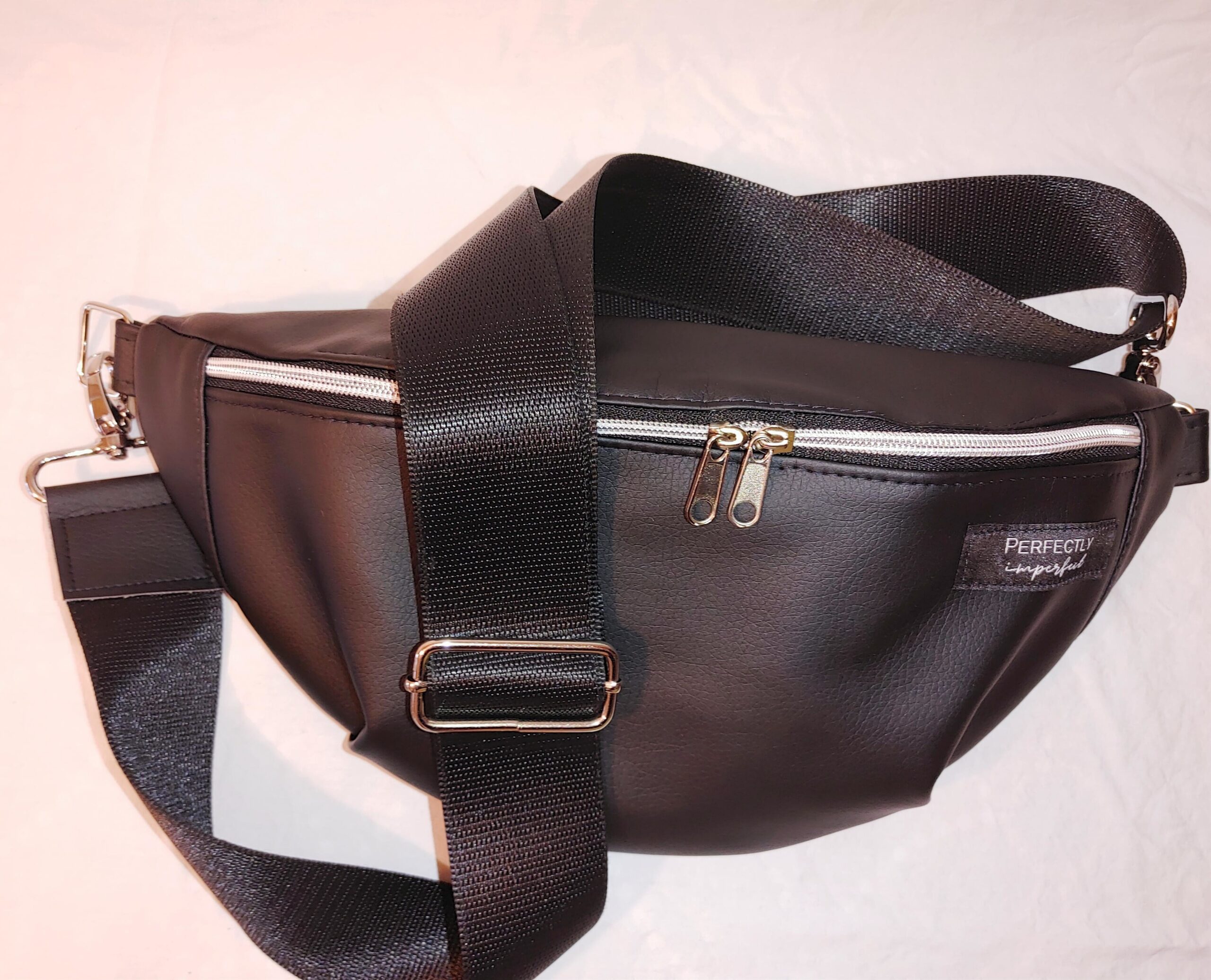 Bauchtasche aus schwarzem Kunstleder – puristisch & handgefertigt