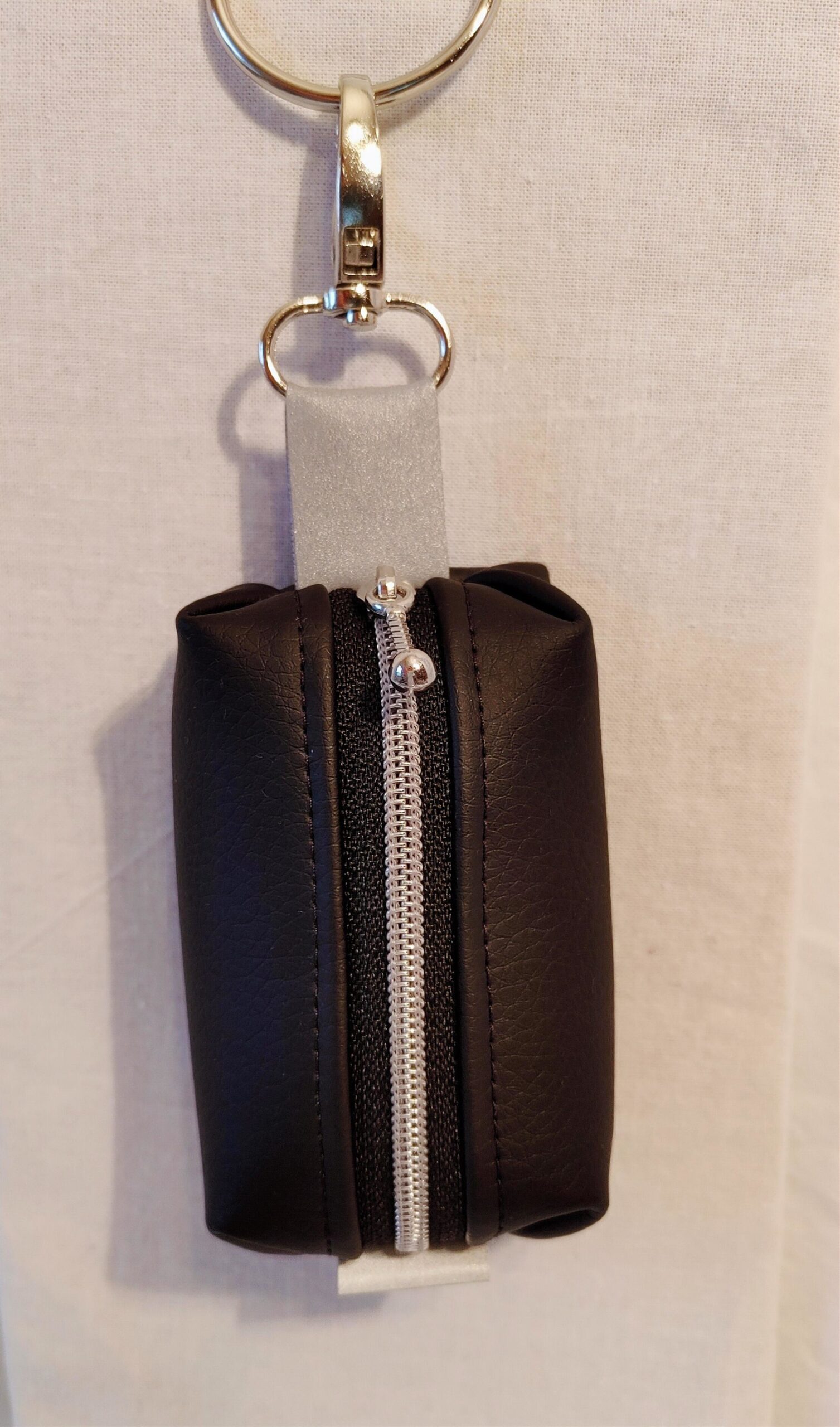 Kleine handgefertigte Tasche für Hundekotbeutel – aus hochwertigem Kunstleder mit Reißverschluss, Öffnung zum Entnehmen und Karabiner zur Befestigung. Erhältlich in verschiedenen Farben.