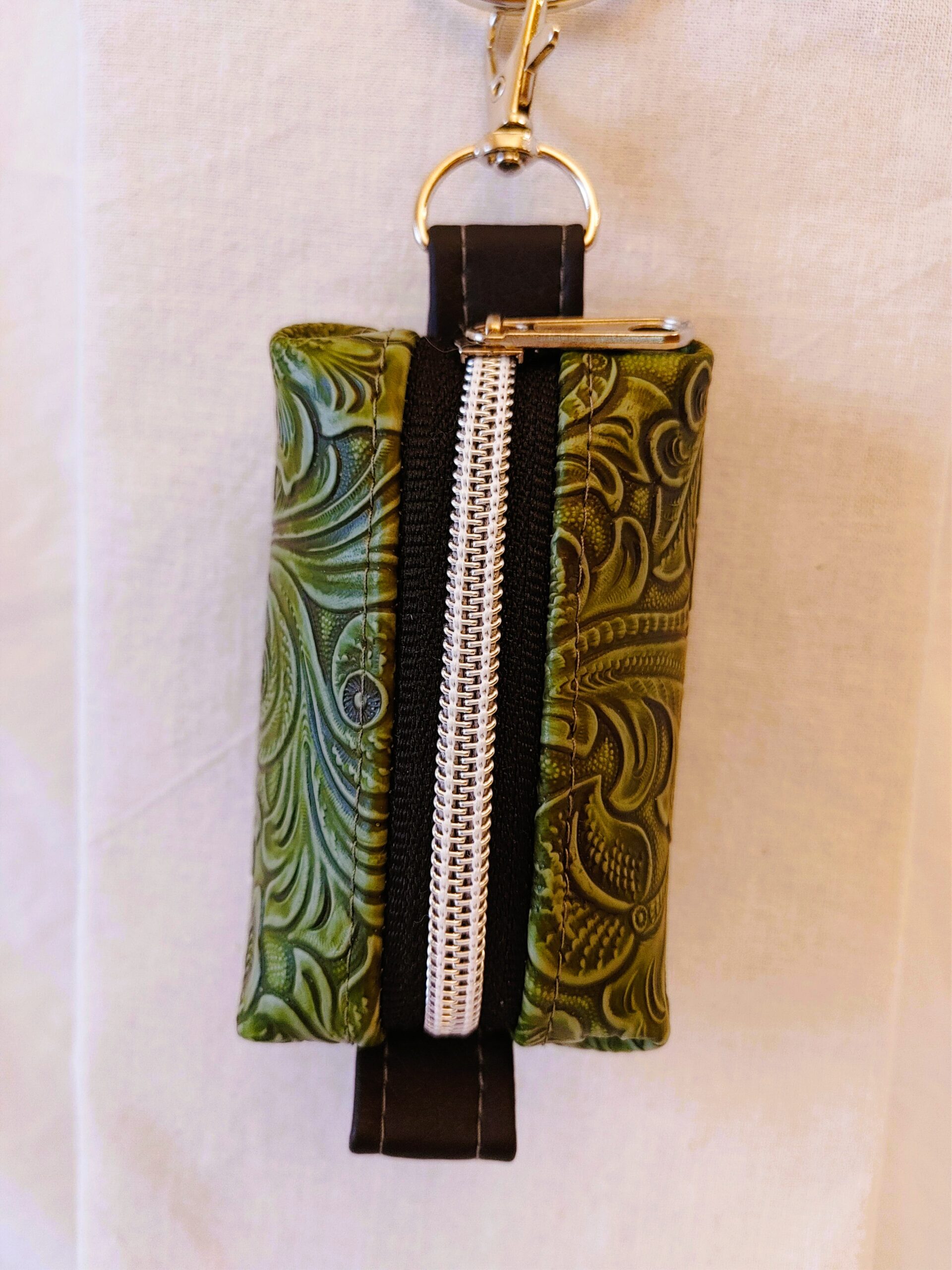 Kleine handgefertigte Tasche für Hundekotbeutel – aus hochwertigem Kunstleder mit Reißverschluss, Öffnung zum Entnehmen und Karabiner zur Befestigung. Erhältlich in verschiedenen Farben.