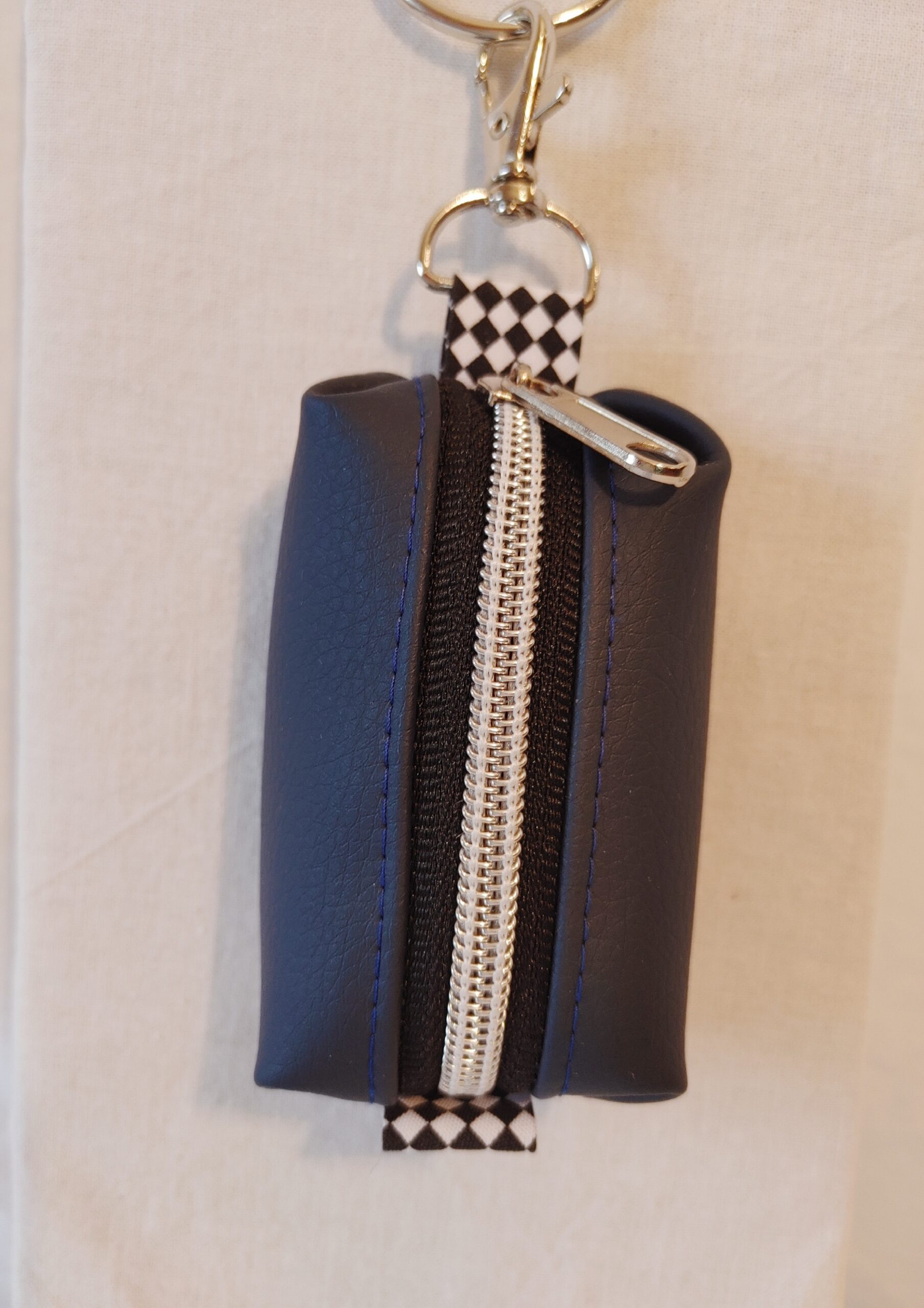 Kleine handgefertigte Tasche für Hundekotbeutel – aus hochwertigem Kunstleder mit Reißverschluss, Öffnung zum Entnehmen und Karabiner zur Befestigung. Erhältlich in verschiedenen Farben.